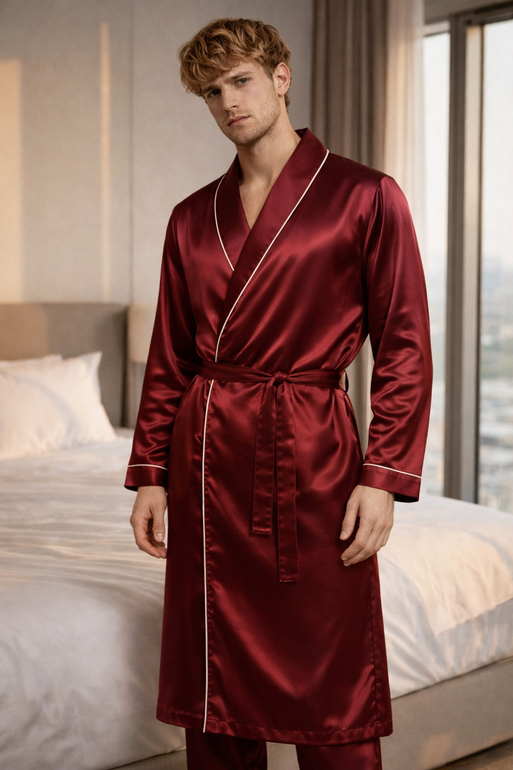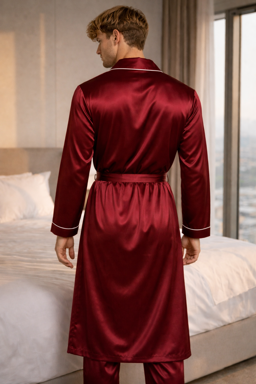Robe Masculino em Cetim de Seda Premium – Vermelho Bordô